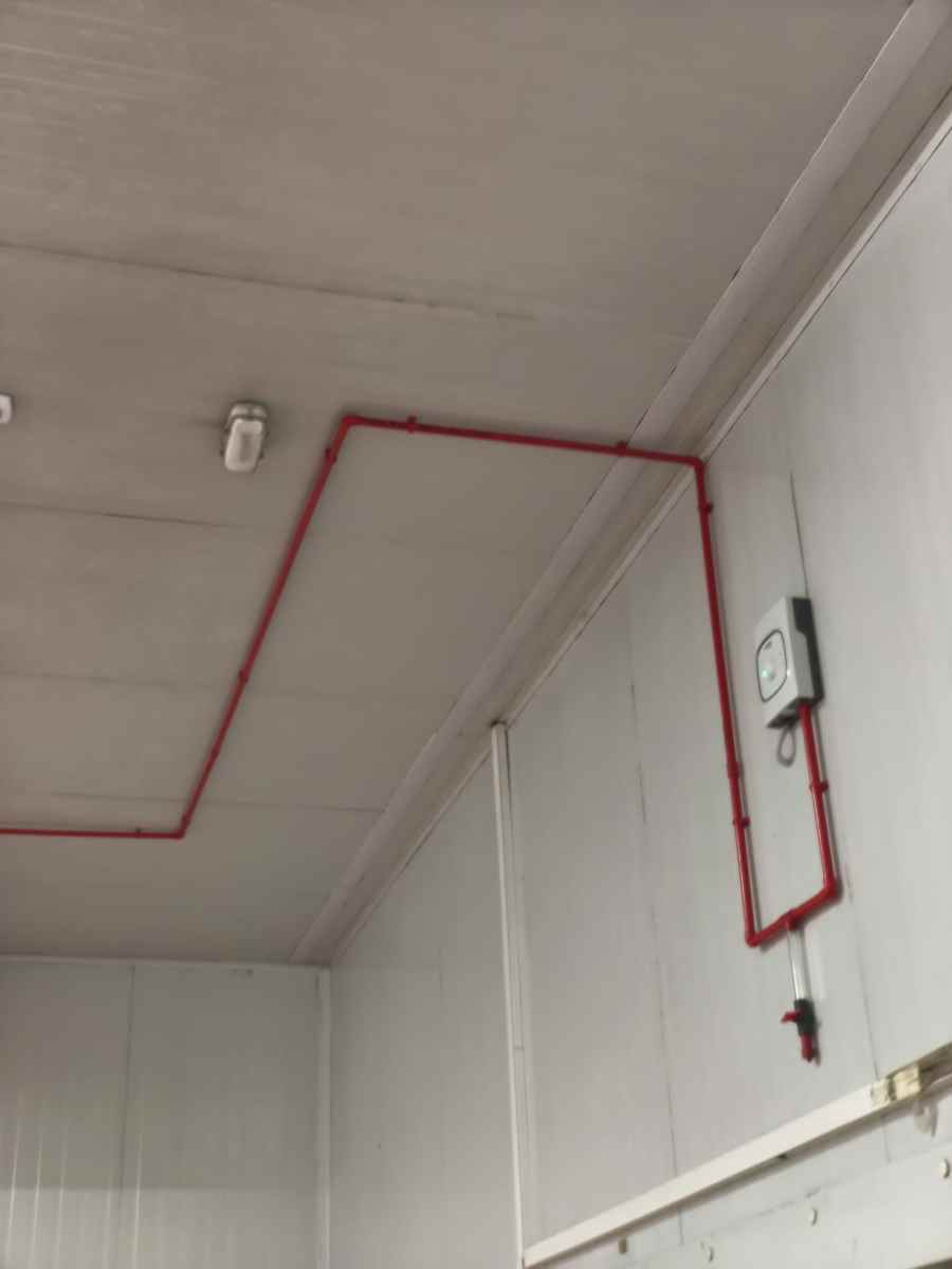 Instalación de sistema de detección de incendios por aspiracion en Industria frigorífica de 5000m2. Sistema gestionado por software grafico ATS 8600. 16 Ud. de aspiración con 1700 metros de tubería. y 250 puntos de detección puntual analógicos.