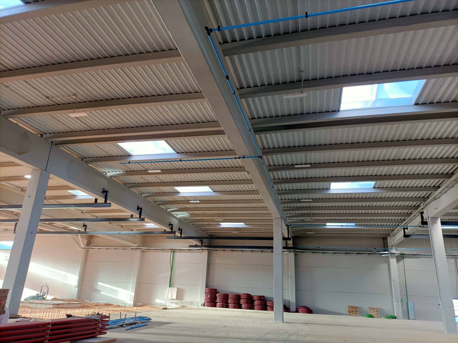 Instalacción de red de rociadores automáticos en nave industrial destinada a almacen eléctrico con 5000 m2 de superficie.