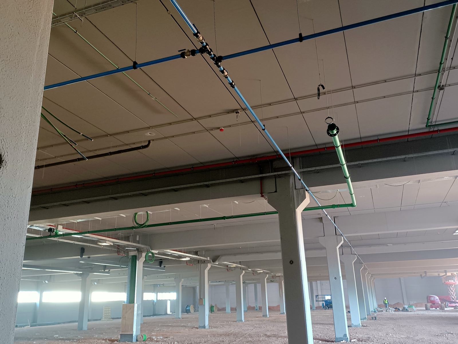 Instalacción de red de rociadores automáticos en nave industrial destinada a almacen eléctrico con 5000 m2 de superficie.