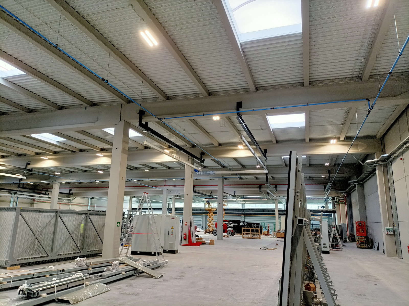 Nave destinada a la fabricación de transformadores propiedad del grupo ORMAZABAL en Humilladero (Málaga) Instalación de detección y alarma de incendios analógica, instalación de extintores y señalización contra incendios y emergencia.