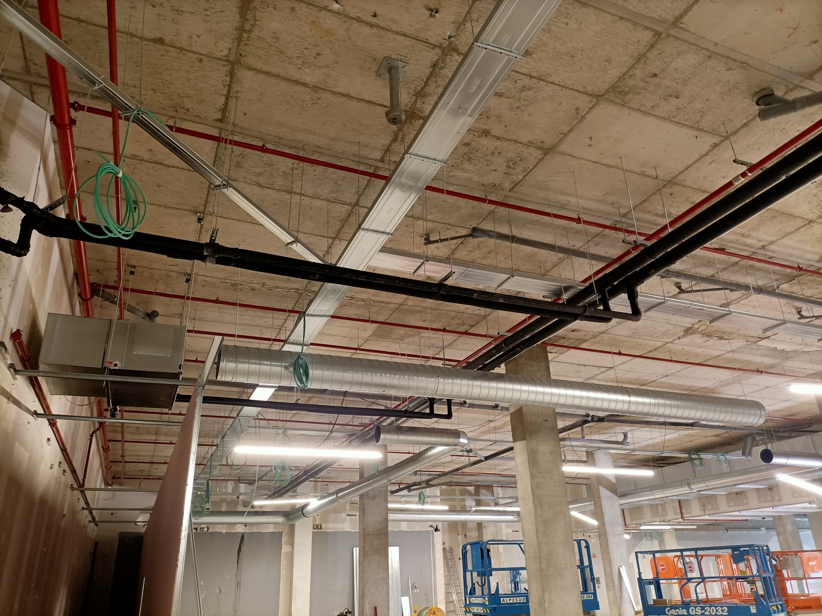 Instalación de sistemas de extinción automatica por rociadores e instalacion de sistemas de detección analógica de incendios en todo el edificio.