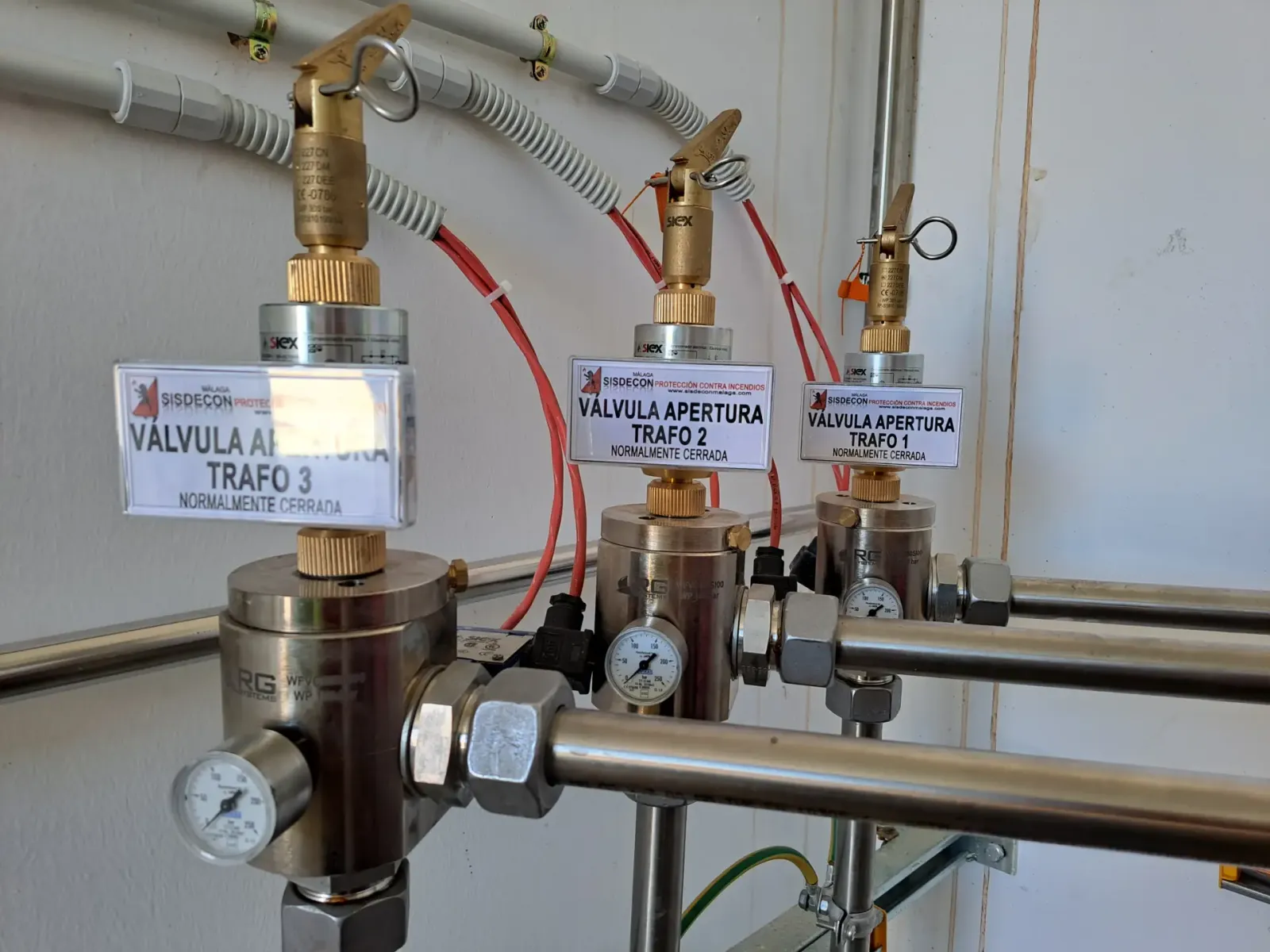 18 sistemas de extinción por gas FE-13 con sistema de pesaje continuo en cámaras de reguladores de balizamiento de nueva pista en el aeropuerto de Málaga, en salas de reguladores, salas de baja y media tensión y transformadores de alta tensión. Sistema de inundación total formado por 2 baterías de 10 cilindros de 120 litros con botellín piloto, 4 baterías de 3 cilindros de 67 litros, 4 cilindros modulares de 120 litros, y 8 cilindros modulares de 26 litros, tubería y accesorios ASTM ANSI 316L calidad Schedule 80 y accesorios roscados de 3000 LBS.